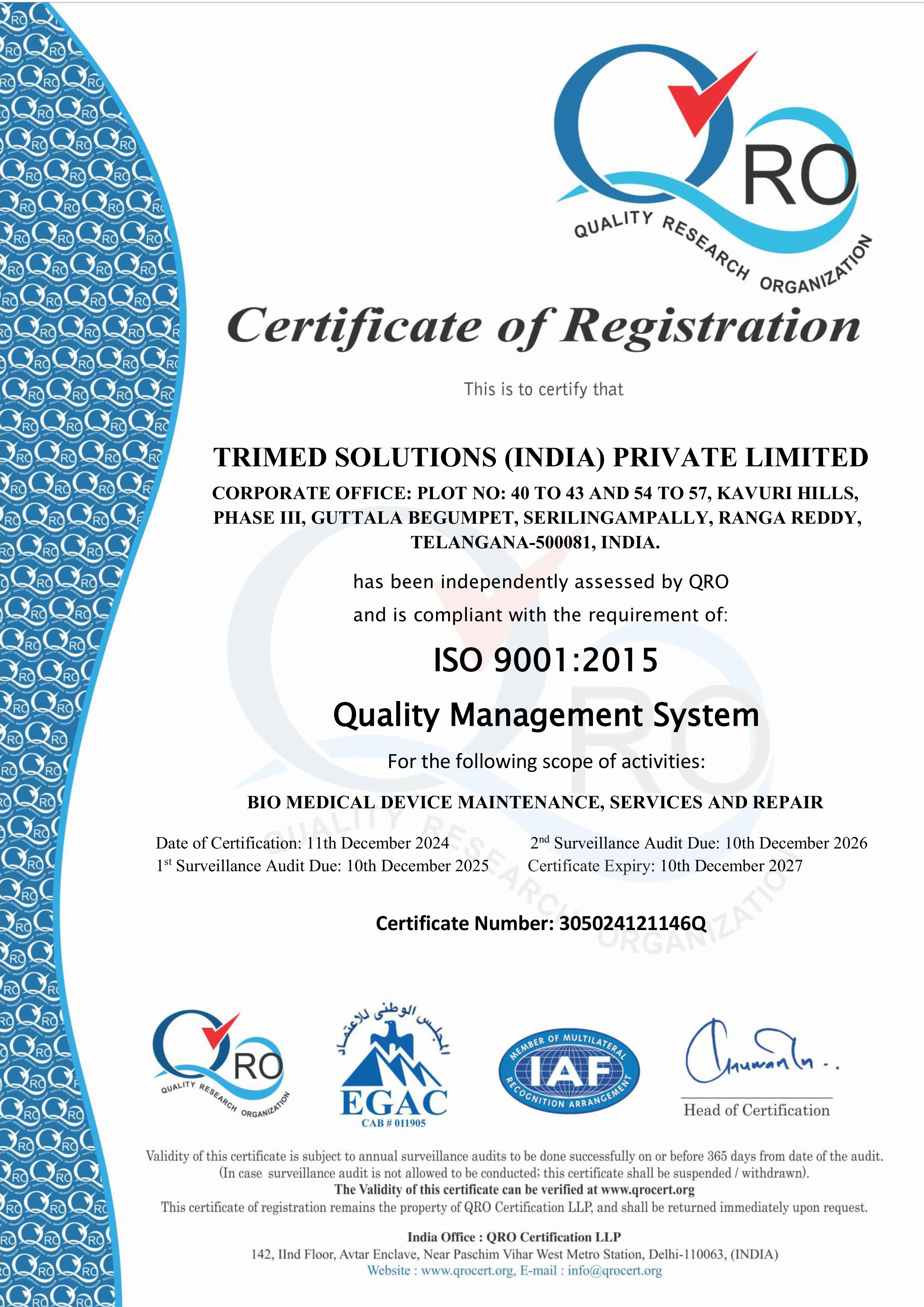 Please get in touch with us regarding your queries at quality@trimedsolutions.in contact no-8019779199.